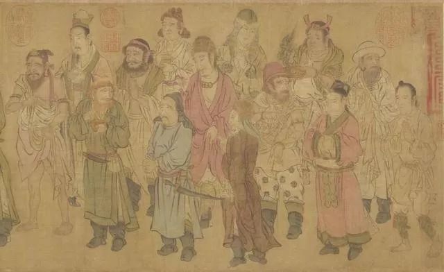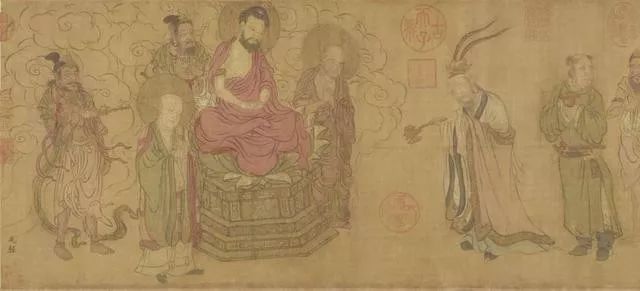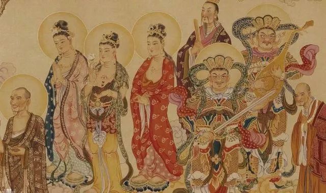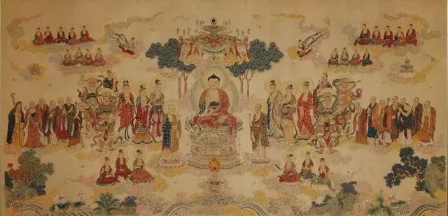 举例:“十八罗汉像”是在一幅画中或多幅画中画十八罗汉,但仅仅绘出每位罗汉的仪表形色,或降龙、或伏虎,各各罗汉不相干连。至于“十八罗汉过海图”即是在一幅画中绘出十八罗汉共同渡的不同动作。佛经画就其实质来分,不错有七类:(一)佛类,(二)菩萨类,(三)明王类,(四)罗汉类(包括缘觉类),(五)天龙八部类,(六)高僧类,(七)曼陀罗类。佛图就其实质来分,也不错有六类:(一)佛传类,(二)本生类,(三)经变类,(四)故事类,(五)山寺类,(六)杂类。此外还有“水陆画”一种,是由像和图夹杂组成的佛画集。
