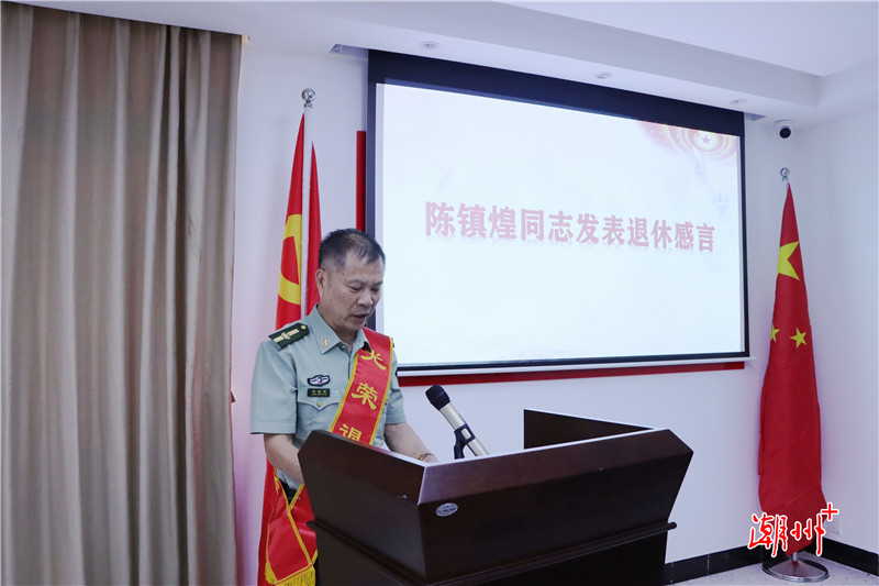 庆典在一个满载回忆的温馨小视频中拉开帷幕,区东谈主武部陈镇煌同道发表退休感言,回归我方从执戟服役到改行至市、区东谈主武部这42年来的主要资格和责任感悟,感谢单元多年来的热心和解救,并以本人执行饱读吹年青同道要对党赤忱,说淳厚话、办淳厚事、作念淳厚东谈主。